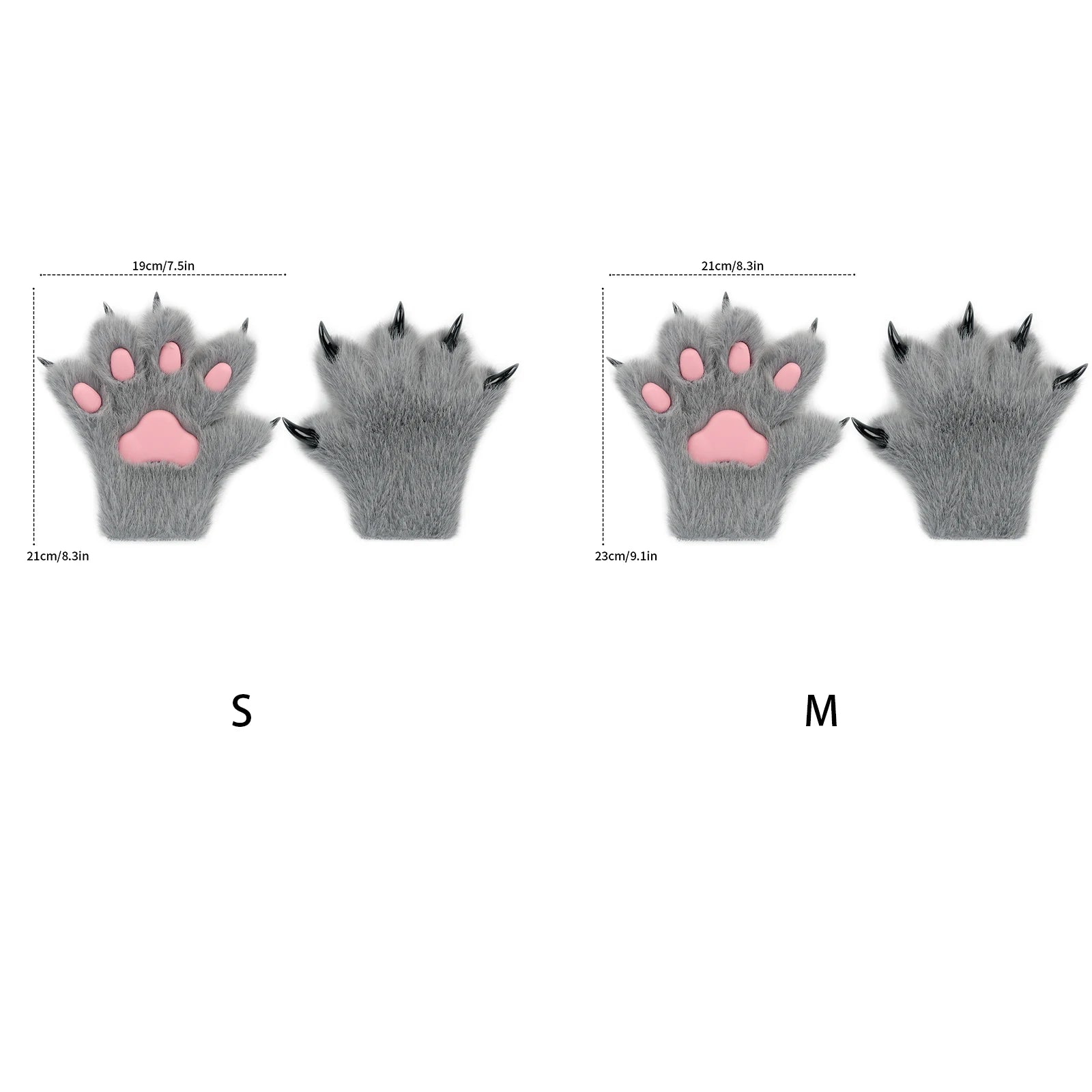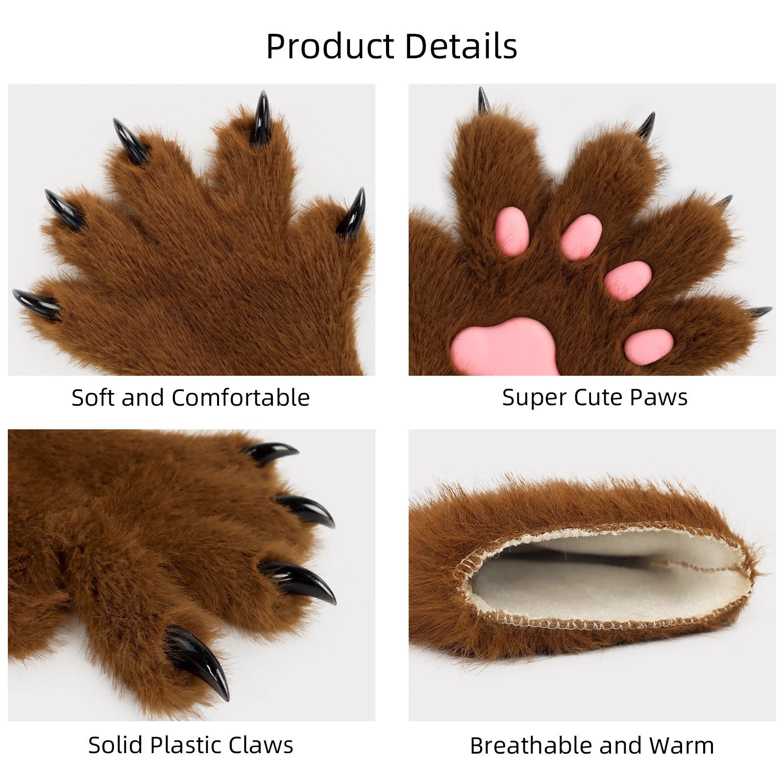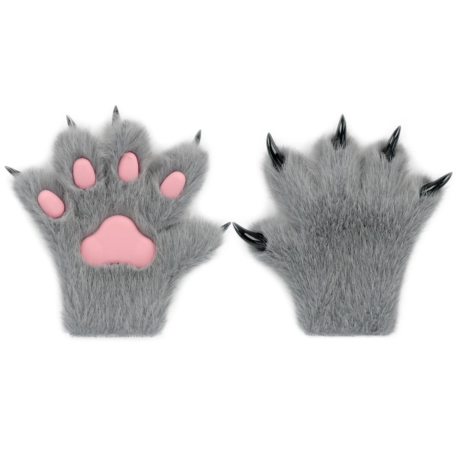 Furry Fur Cat Wolf Fox Dog Fluffy Animal Paws Claws Gloves Mittens Hands Costume Cosplay Halloween Christmas for Kids